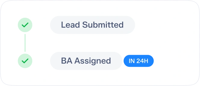 A dedicated Business Analyst is assigned to every lead you submit within 24 hours, managing client discovery, requirements, and all communication on your behalf.